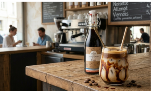 - Verse le sirop de banane artisanal directement dans le blender et mixe 5 secondes supplémentaires pour bien l’incorporer.